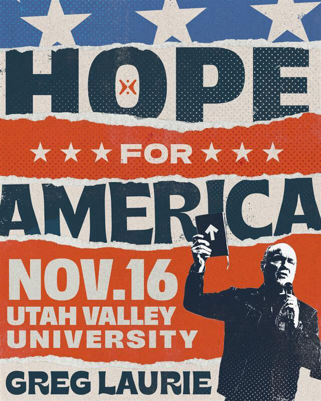 Greg Laurie will hold a special, one-night Harvest Crusade event called, “Hope for America” on Sunday, November 16, 2025 from 4:30 pm to 7:30 pm at site of Charlie Kirk’s assassination.