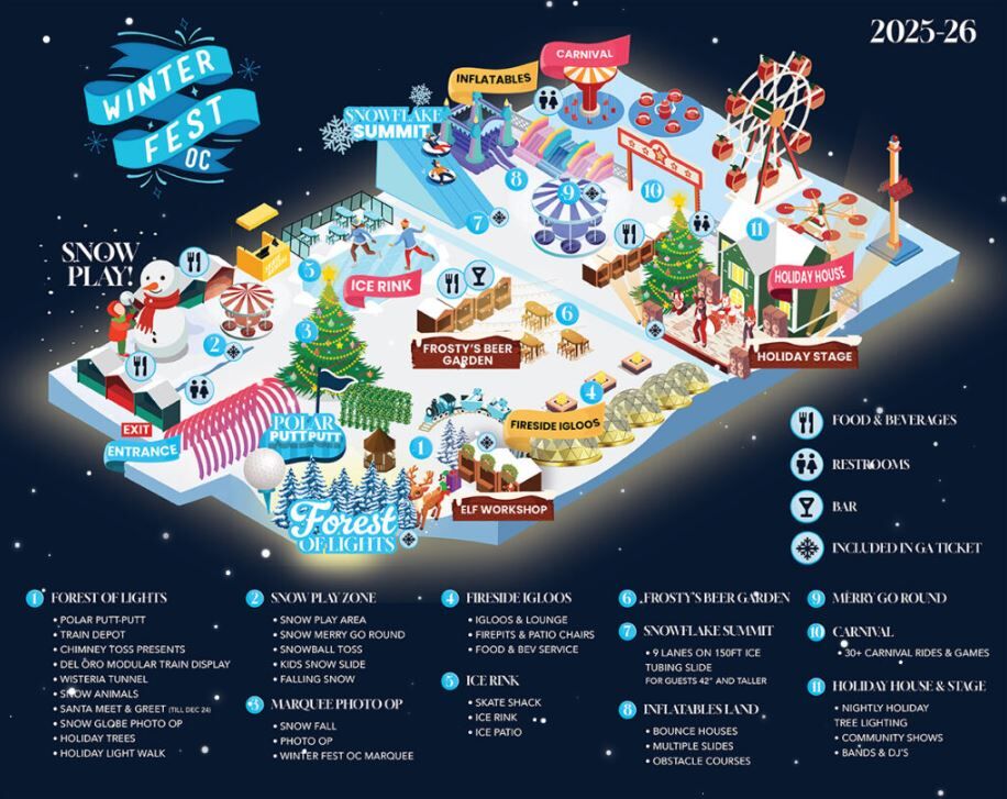 Winter Fest OC - Southern California's Largest Winter Festival is a celebration that brings the magic of winter to SOCAL! Join us for their 11th Anniversary Celebration - November 28, 2025 through January 4, 2026! CLICK HERE for additional information and to purchase Tickets for Winter Fest OC!
